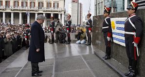 Vázquez colocó una ofrenda floral a los pies del monumento de José Gervasio Artigas y no hizo declaraciones.