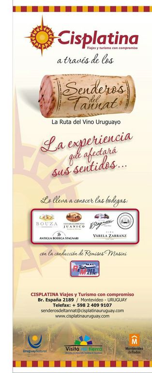 Ayer, martes 9 de octubre, en el Ministerio de Turismo y Deporte, se efectuó el lanzamiento de los SENDEROS DEL TANNAT, La Ruta del Vino Uruguayo, por parte de su creadora y responsable, la Téc. Mónica Rossi, Directora de CISPLATINA Viajes y Turismo con compromiso.